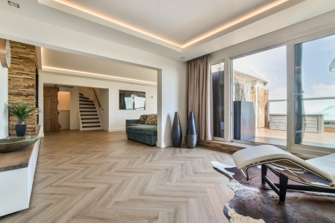 - Zeer grote woonkamer met extra hoge ramen en veel lichtinval